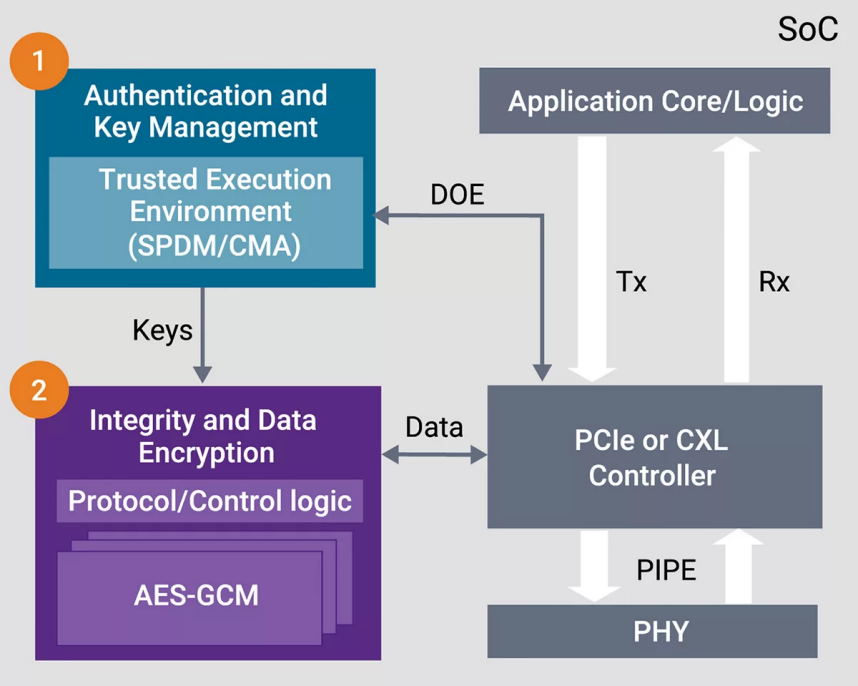首先是,随着数据中心、网络和移动设备对高性能互连的需求不断增长,PCIe和CXL已成为高速互联关键接口技术。为了保障数据安全,从2020年底的PCIe 5.0和CXL 2.0开始,到最新一代的PCIe 6.0和CXL 3.0,PCIe和CXL标准均引入了IDE安全功能,可防止数据篡改和链路物理攻击。