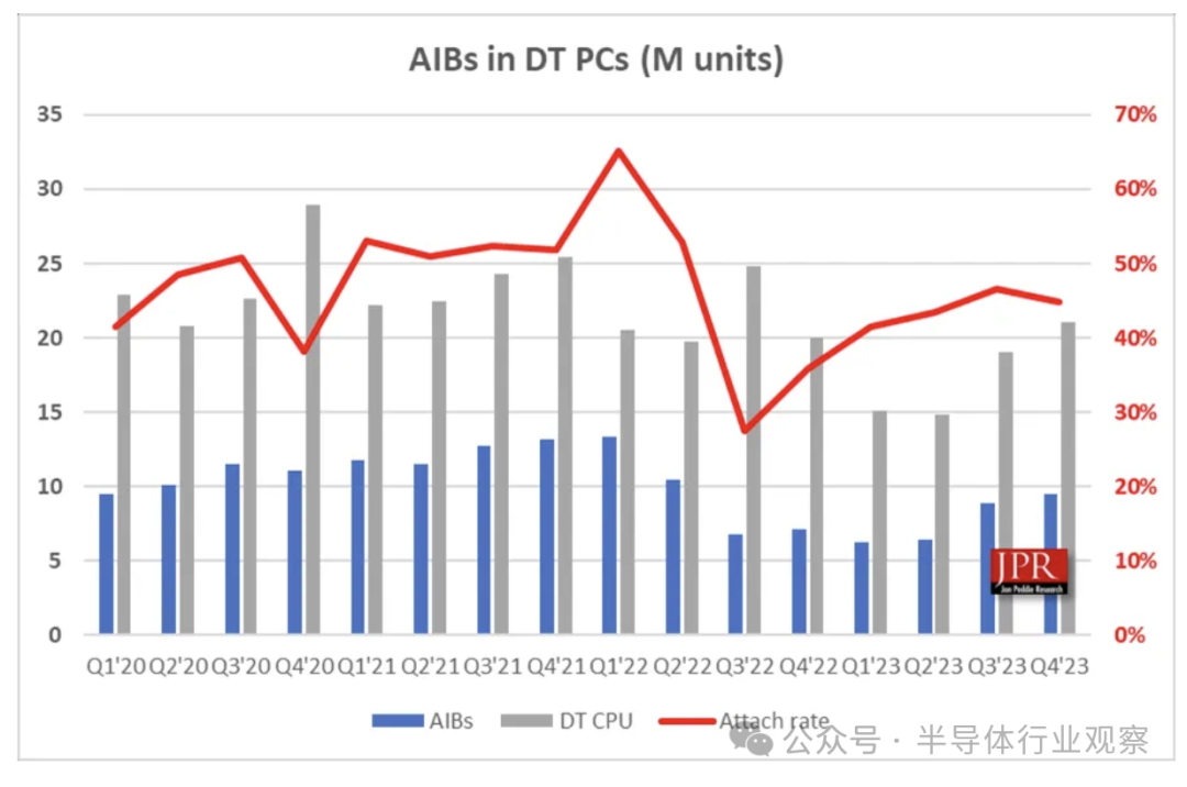尽管由于COVID-19大流行,2020年和2021年独立GPU的销售额不断增加,但2022年出货量急剧下降,这可能是由于全球经济疲软导致一些国家陷入衰退。然而,2023年是显卡销售复苏的一年,第四季度延续了这一趋势,出货量增长6.8%。