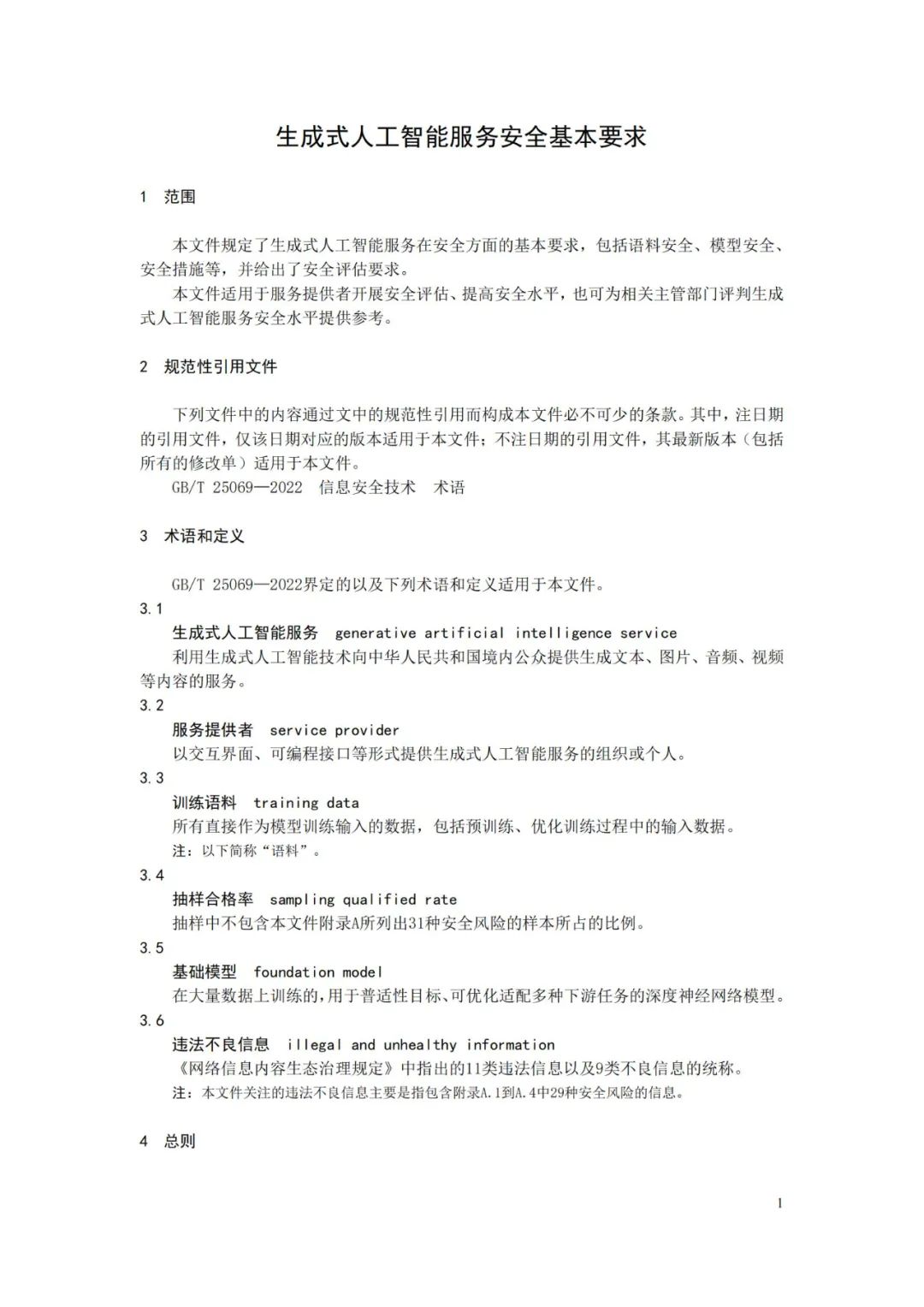 该文件适用范围和适用对象是谁?《基本要求》中明确列明,“本文件规定了生成式人工智能服务在安全方面的基本要求。适用于服务提供者开展安全评估、提高安全水平”。