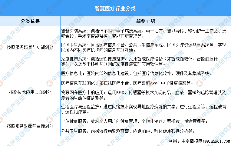 智慧医疗行业是指运用互联网、物联网、大数据、人工智能等新一代信息技术,实现医疗服务、健康管理、公共卫生等领域的智能化、数字化和精细化的新型医疗服务模式。这种模式通过提高医疗服务的效率和质量,降低医疗成本,为人民群众提供更加便捷、高效、安全的医疗服务。随着科技的不断发展,智慧医疗行业正在成为推动医疗行业创新发展的重要力量。智慧医疗是一个广泛的概念,可以从多个维度进行分类,以下是一些主要的分类方式: