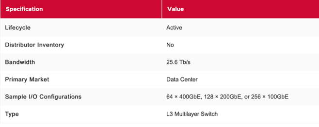 博通官网Tomahawk4/BCM56990 Series技术规格及库存