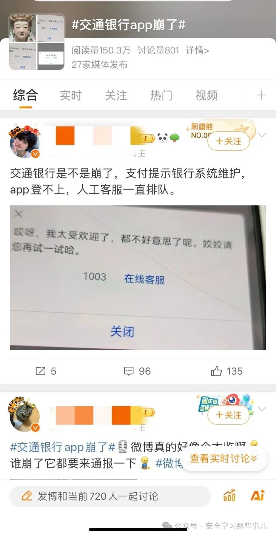 2024年4月23日,“交通银行APP崩了”这一话题冲上热搜!上午,有不少网友反馈称在交通银行APP尝试转账、购买理财、联系在线客服等都提示“账户有误”或“系统正忙”。