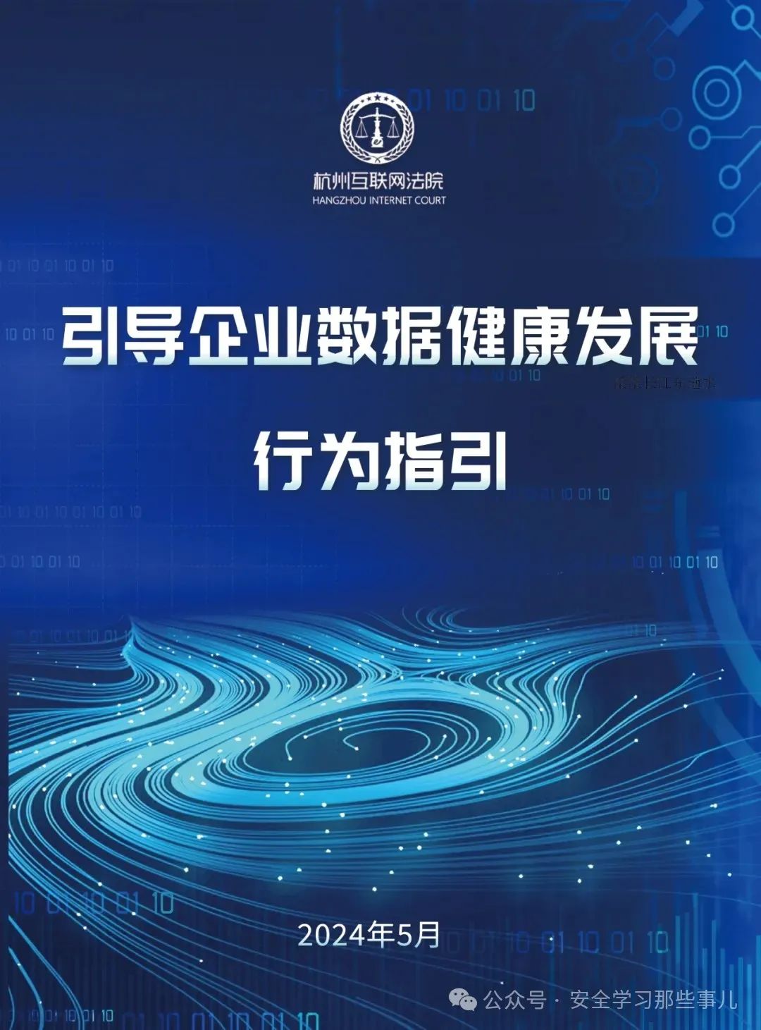 2024年5月24日,杭州互联网法院在“中国数谷”举行数据要素产业生态共建活动,并现场发布《引导企业数据健康发展行为指引》。《行为指引》坚持政治引领、问题导向,聚焦市场主体在大数据产业发展中的热点和难点问题,具有积极推动企业数据赋能、不断强化企业数据合规管理、有效应对当前数据安全形势的特点。