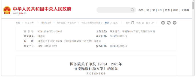 5月29日,国务院印发《2024-2025年节能降碳行动方案》(以下简称《行动方案》)。