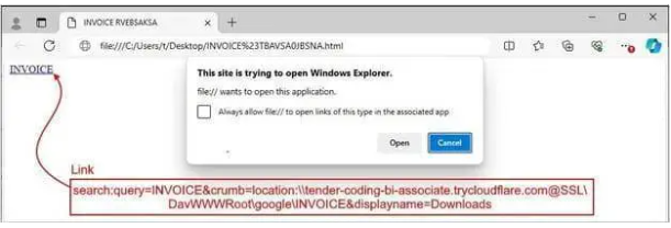 Trustwave SpiderLabs的研究人员在报告中说,这种技术已被威胁分子广泛使用,他们使用HTML附件在攻击者的服务器上启动Windows搜索。