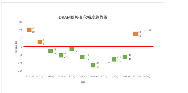 在此背景下,全球三大存储原厂存储器价格从2021年第四季度开始连续8个季度下跌。根据集邦咨询的数据,DRAM价格从2021年第四季度降价3%~8%开始,持续下探,至2022年第四季度达到最高单季度降幅,为20%~25%。