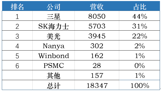 根据集邦咨询统计的2024年第一季度全球DRAM企业营收数据,三星、SK海力士和美光分别以全球存储市场44%、31%、22%的份额,位居前三位,三者共占据全球几乎95%的市场份额。DRAM是存储市场中出货量最大的产品类型,从存储器全品类来看,这三家企业与其他企业间的营收差额也十分悬殊。存储市场具有鲜明的寡头垄断特征。在这样的情况下,这三家企业的一举一动将直接带来整个存储市场的震动,甚至可传递至与之相关的整个电子产业链。