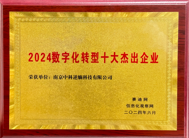 2024年6月27日,“2024年度数字化转型标杆成果及创新成果”发布大会上,南京中科逆熵科技有限公司荣获“2024数字化转型十大杰出企业”称号,这标识着中科逆熵在数字化转型推进、新质生产力蓄势赋能等取得了丰硕成果,得到了业界的高度认可。