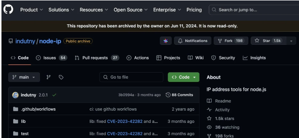 本月初,“node-ip”项目的作者Fedor Indutny将该项目的GitHub存储库存档,实际上使其成为只读的,并限制了人们打开新问题(讨论)、拉取请求或向项目提交评论的能力。