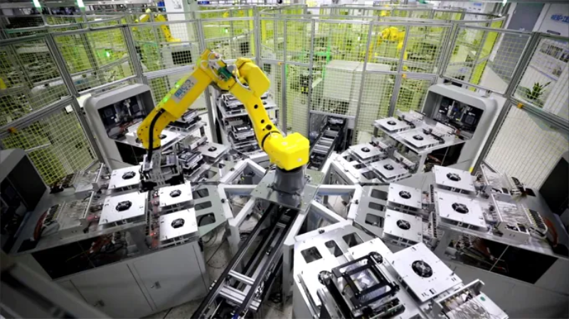 除了生产效率的提升和运营成本的降低,5G等相关新技术应用也显著提升了产品质量。在服务器装配车间,机器人“搭档”协同作业,利用5G机器视觉对螺钉孔进行精准定位,能够实现2.5英寸、3.5英寸等多规格、多尺寸硬盘及其支架的精密组装。相比于人工组装硬盘,组装效率提升30%,不良率降低50%。