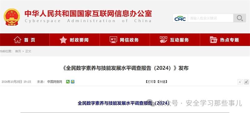 2024年10月25日,国家网信办信息化发展局发布的《全民数字素养与技能发展水平调查报告(2024)》(点击阅读原文查看全文)显示,我国六成以上公民具备初级及以上数字素养与技能,数字素养与技能水平和区域经济发展态势相符。