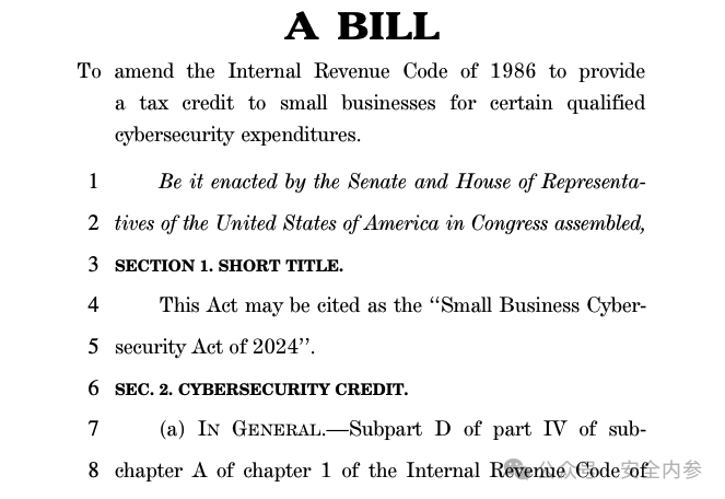 该法案主要针对美国国防工业供应商需要实施的CMMC合规,员工人数不超过50人的公司可申请最高5万美元税收抵免。