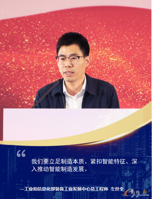 工业和信息化部装备工业发展中心总工程师左世全为本次大会致辞。左世全表示,近年来我国智能制造在制造模式、供给能力、生态体系建设等各方面取得长足进步,一批先进智能工厂陆续建成,柔性化制造、智能化生产等新模式、新业态加快发展,企业生产组织方式和运营模式发生深刻变革。他指出,随着人工智能、5G大数据等技术的快速发展,智能制造正向更大的范围、更深的程度、更高的层次演进。我们要立足制造本质、紧扣智能特征、深入推动智能制造发展。工信部装备中心也将加强与各方的交流合作,助力制造业向高端化、绿色化、智能化迈进。