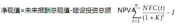 式中:NPV-净现值;NFC(t)表示第t年的现金净流量;K-折现率;I表示初始投资额,n是项目预计使用年限。