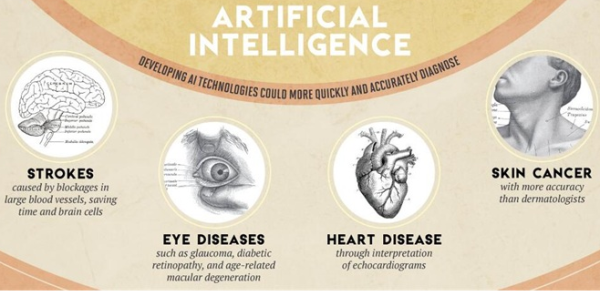 随着技术的发展和普及,人工智能可以帮助诊断中风、眼病、心脏病、皮肤癌和其他疾病。