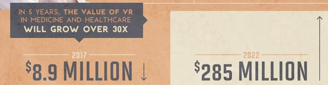 因此,VR被认为是教学和治疗的一种经济有效的工具,VR医疗保健服务市场预计在未来5年增长30倍以上,将从2017年的890万美元增长到2022年预计的2.85亿美元。