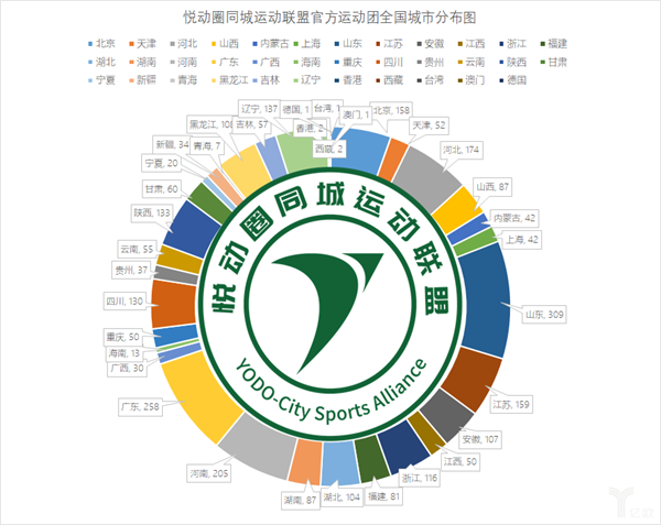 截止目前,根据其官方数据统计,悦动圈应用下载量已超过5亿,DAU超千万,已经辐射全国33个省级行政区(包括中国台湾),328个地级市,2200个区县城市,2050个大中学校,10000多家企业,地区覆盖率超90%。旗下拥有官方城市运动团超过2000个,线上运动圈子超过10万个,线下聚拢运动爱好者超过百万。
