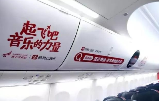 2017年网易云音乐和扬子江航空联手打造的“音乐专机”亮相上海浦东机场。飞机上。印满了18个神机歌单,面对着扑面而来的广告语,并没有引来用户的反感,反而收到一大波好评,在社交媒体上展开另一波病毒式传播。