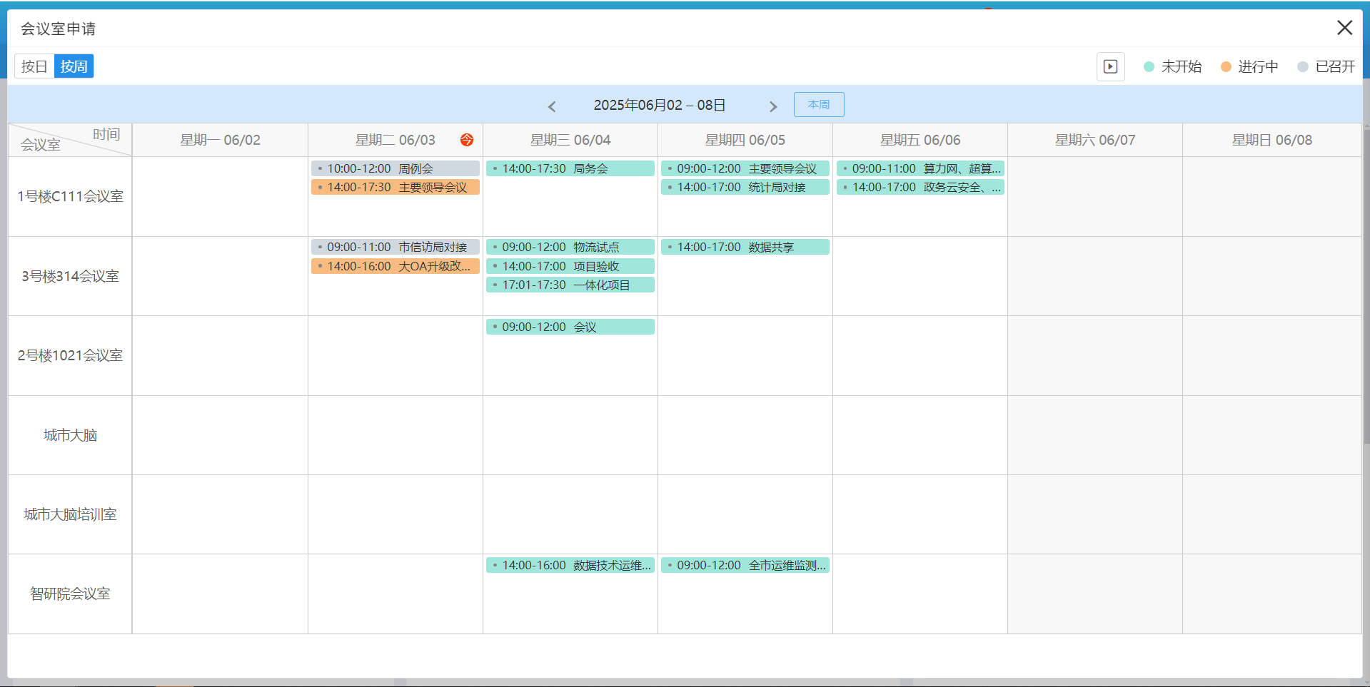 (三)项目建设。成立项目实施团队,严格按照项目管理规范和要求,开展一系列项目实施工作。市数据服务中心克服困难,全力协调配合项目建设。逐步完成基础支撑体系建设、与电子公文系统对接、平台首页设计建设、收发文流程配置、办会办事等基础功能建设,完成信创终端适配,项目按进度计划有序推进。