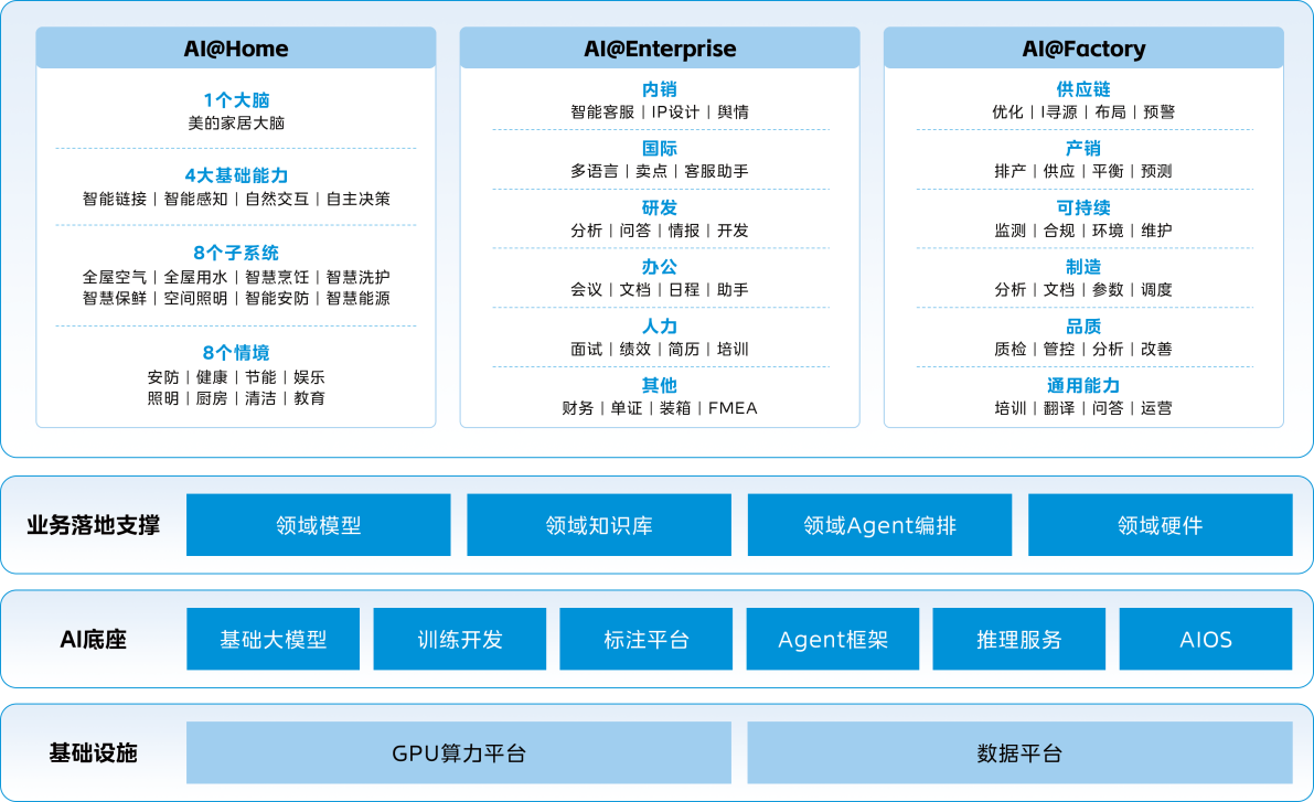 在此"产业升级刚需"与"技术突破窗口"双重驱动下,美的集团凭借其深厚的制造业根基与前瞻的数字化投入,将内部验证成功的AIGC应用实践,通过美云智数平台进行体系化封装与输出。本解决方案旨在破解制造业AI落地难题,为企业提供一条从技术导入到价值变现的清晰路径。