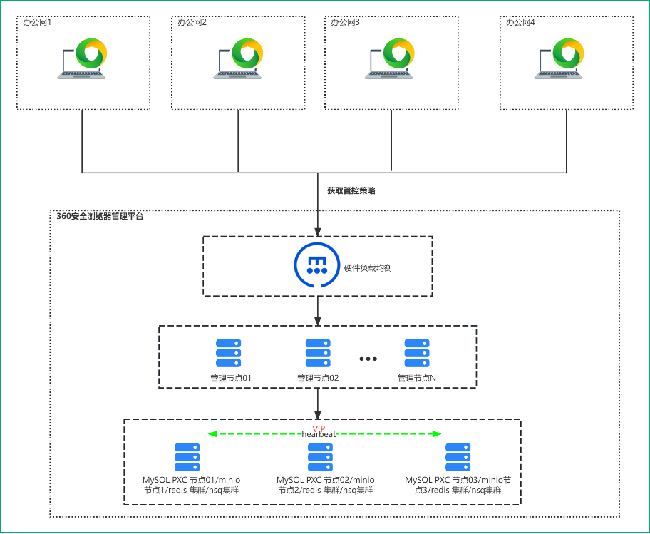管控端(服务端)采用分布式部署架构,支持国产服务、中间件、数据库部署,架构采用三段式缓存技术,确保服务宕机也不影响业务;支持节点弹性扩容以应对海量QPS并发需求,能持续保障系统稳定高效运转,保障业务的连续性。