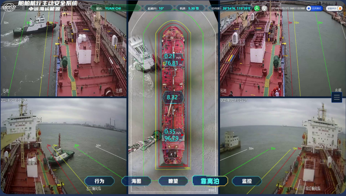 靠泊作业环节多、协同要求高,是运输全程的关键节点。该模块通过360°全景监控和AR技术,实现高精度靠泊辅助。通过船舶周围部署的高清摄像头构建360°全景监控,消除靠泊视野盲区;AR技术将靠泊路径、船岸距离、船速、夹角等关键信息可视化呈现,帮助船员精准判断船舶姿态;智能算法实时校准船位、速度与船岸夹角,高精度靠泊辅助可大幅降低靠港作业安全风险,靠泊时间缩短15%以上。
