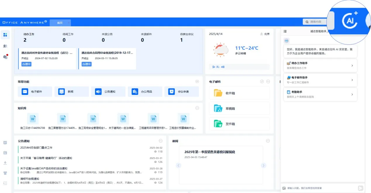二、构筑国企“AI数字员工”梯队:济南万融集团依托通达OA智能助手树立数字地产新标杆