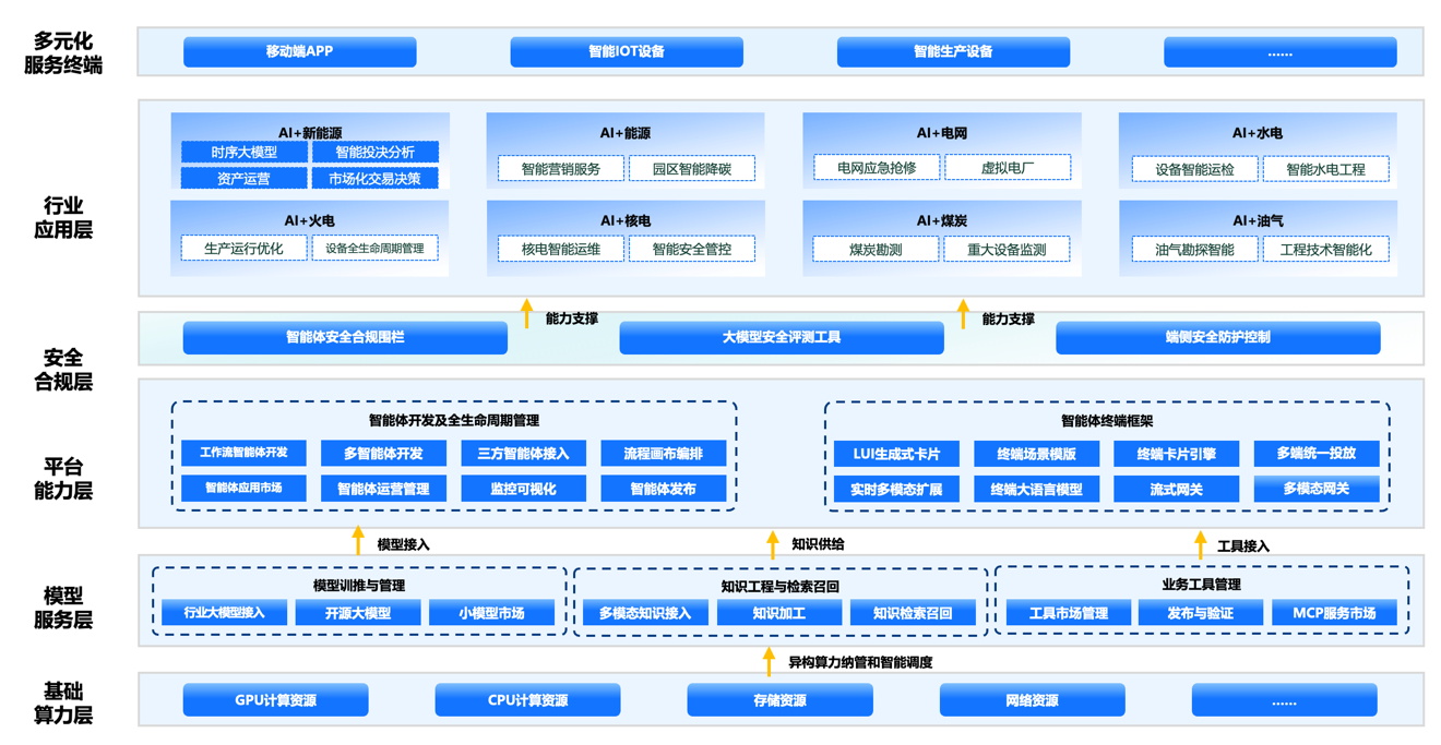 方案以“筑基→赋能→进化”三步走路径,从数智底座建设入手;进而提供智能体开发平台,赋能企业自主构建面向调度、交易、投决、客服等场景的AI应用;最终通过标准化评测与运维体系,驱动行业大模型与知识体系持续迭代,旨在帮助能源企业构建自主可控的AI生产力,为行业智能化转型提供可复制的“生态实践”范本。
