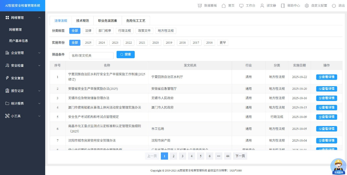 基于深度学习计算机视觉算法,实现多模态隐患识别,对现场上传的图片、视频流进行实时分析,自动识别如安全防护缺失、设备泄漏、违规存储、作业环境混乱等典型隐患,识别准确率超过95%。发现隐患后,系统即刻向责任人员推送预警信息,并自动关联“归零库”中的整改依据与标准措施,一键生成核查任务,启动“归零”处理流程,极大提升隐患响应与处置速度,实习即时反馈与闭环触发。
