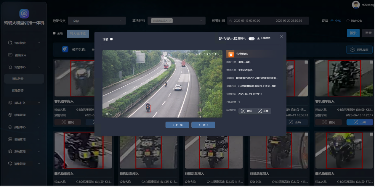 o告警信息通过GB28181协议实时对接视频共享平台,并推送至交警、养护等部门移动端。处置结果可回传用于模型优化,形成“检测-告警-处置-反馈”的数据驱动闭环,从根本上了提升处置效率。