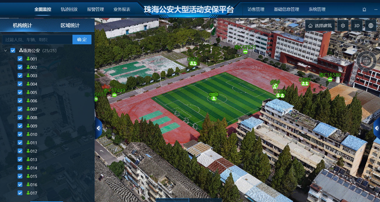基于高精地图与倾斜摄影技术,构建活动场地三维模型,叠加警力分布、感知设备、交通路网等图层;