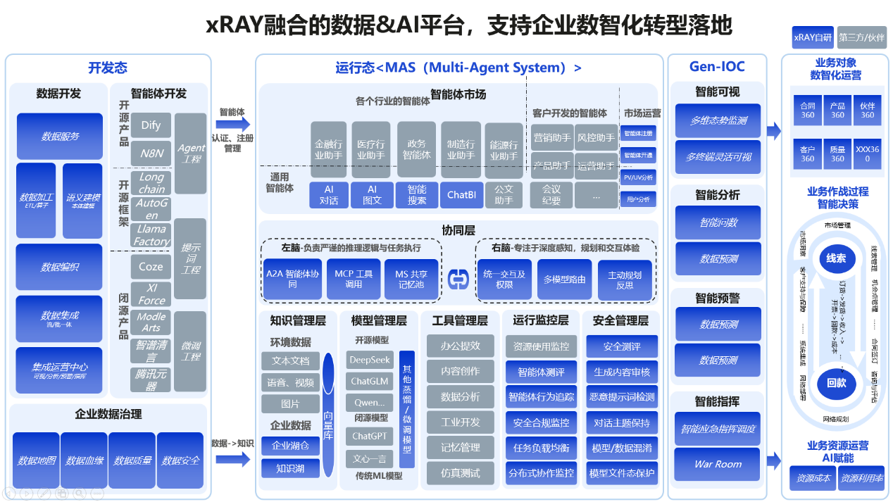 xRAY是业界首个实现“技术兼容性、跨域协同、知识融合、安全可控”一体化的企业智能体平台,已在政务、能源、制造等行业应用: