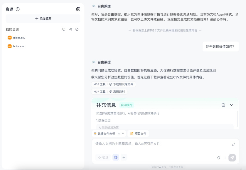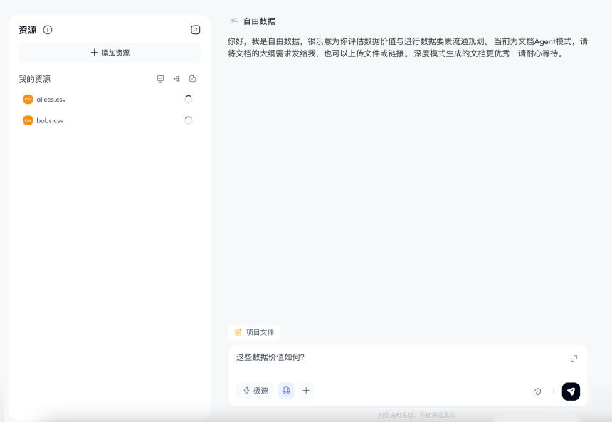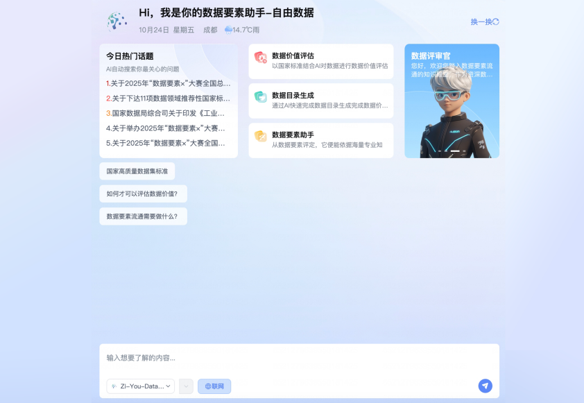 在“人工智能+”行动深入推进与国家“数据要素”战略全面落地的背景下,数据作为新型生产要素的价值激活已成为数字经济高质量发展的核心议题。然而,数据价值认知难、评估标准缺、流通路径堵、运营能力弱等问题,制约了从“数据资源”向“数据资产”的跃迁。为破解这一难题,“自由数据要素大模型”项目应运而生。