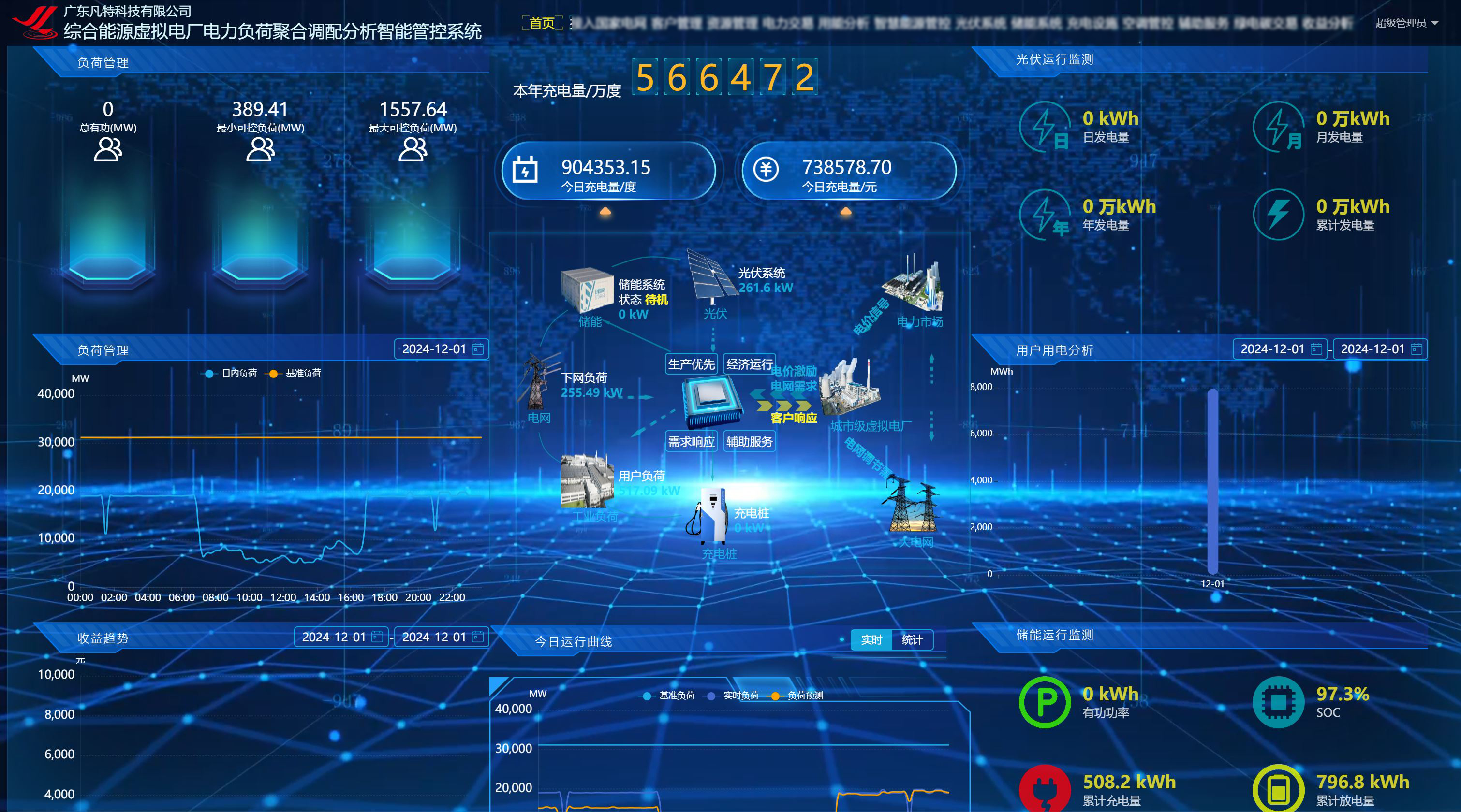 凡特科技研发的《虚拟电厂智能管控系统》通过集成和管理分散的可再生能源、储能设备和柔性生产负荷等资源,对电力系统的可靠性发挥了重要的作用。有效整合分散的可再生能源,如光伏和风能等,并结合储能设备、生产设备等,提供稳定的电力供应保障。同时,虚拟电厂还能针对不同时段的分时电价不同,通过智能管理和调控,实现对负荷的灵活调整,获取了极大的利润,同时降低了用户的用电成本,新能源、售电公司电力现货交易决策支持,在电力现货交易中赚取了较大的利润。