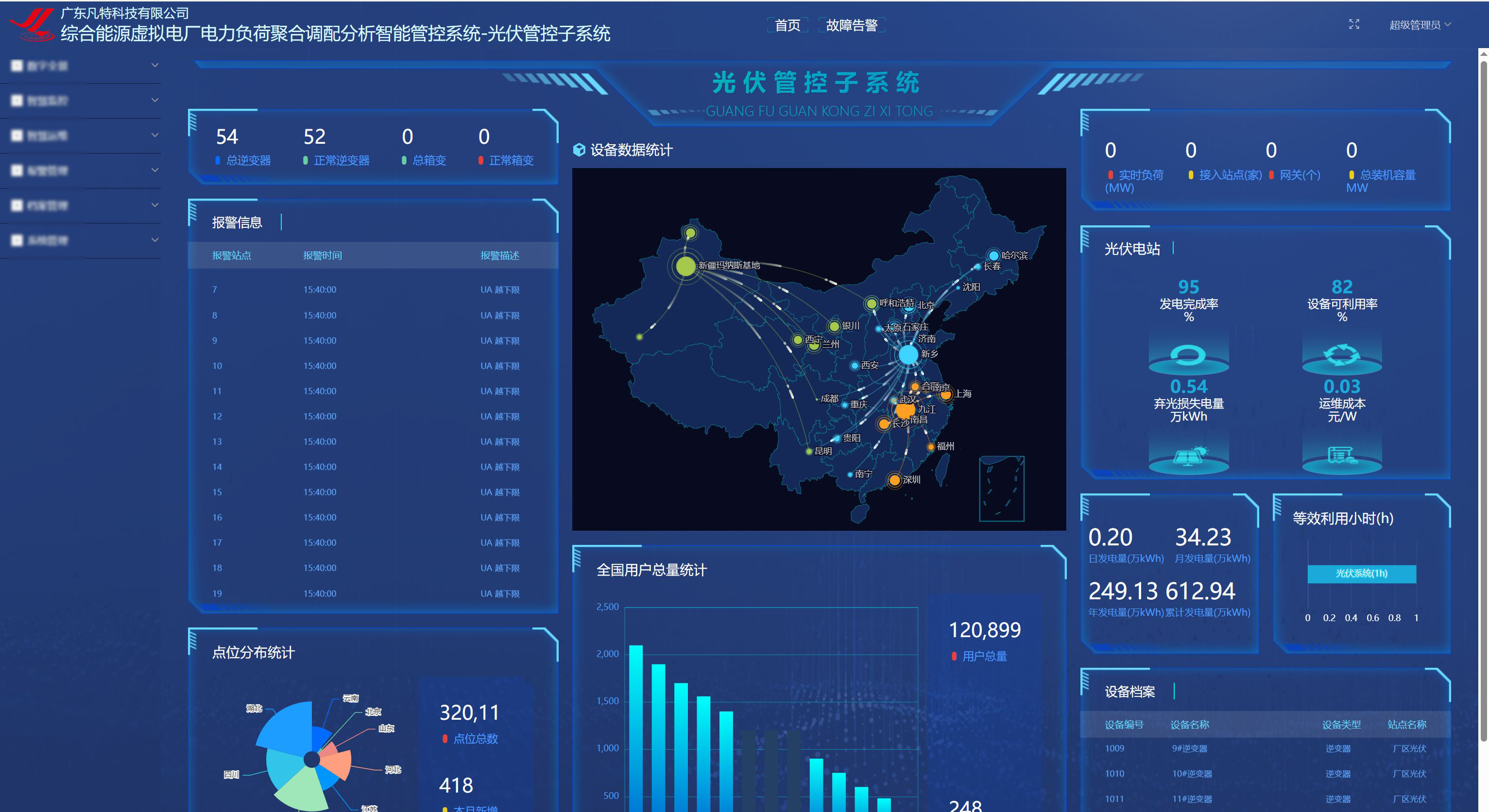 采集展示资源电气参数、设备状态等实时数据,实现全景可视和动态跟踪;支撑宏观决策;设定告警阈值,分级预警异常情况,建立异常识别、工单派发等闭环处理流程。