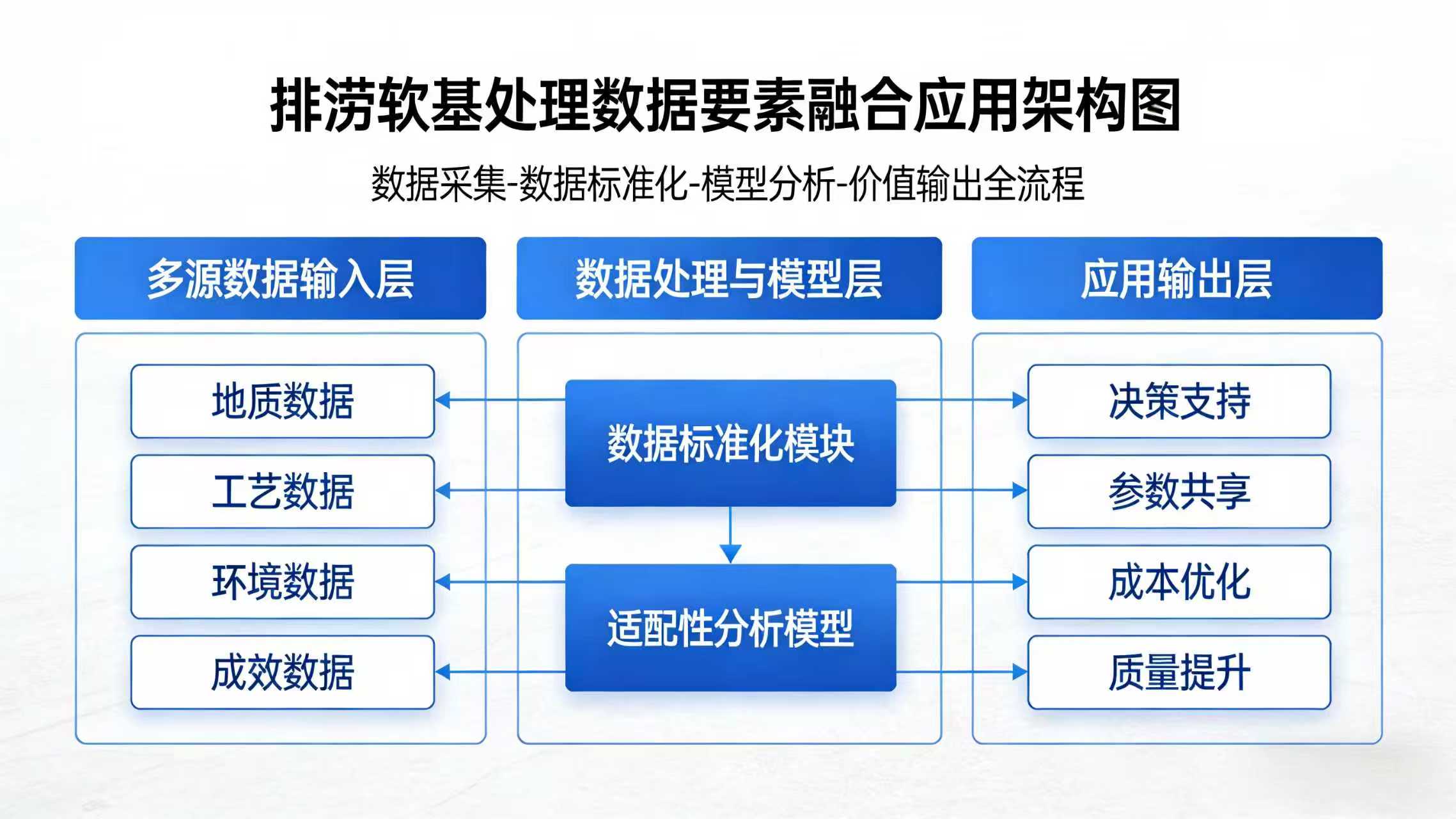 2026年作为数据要素产业“价值深化”关键年及《“数据要素X”三年行动计划》收官之年,工程建设领域亟需打破“数据孤岛”,推动数据要素从“存储”向“价值转化”升级。排涝工程软基处理作为基础设施建设关键环节,面临地质条件复杂(如沿海软土含水率差异达20%-55%)、工艺类型多样的现状,传统依赖人工经验的决策模式已难以适配高质量发展需求。