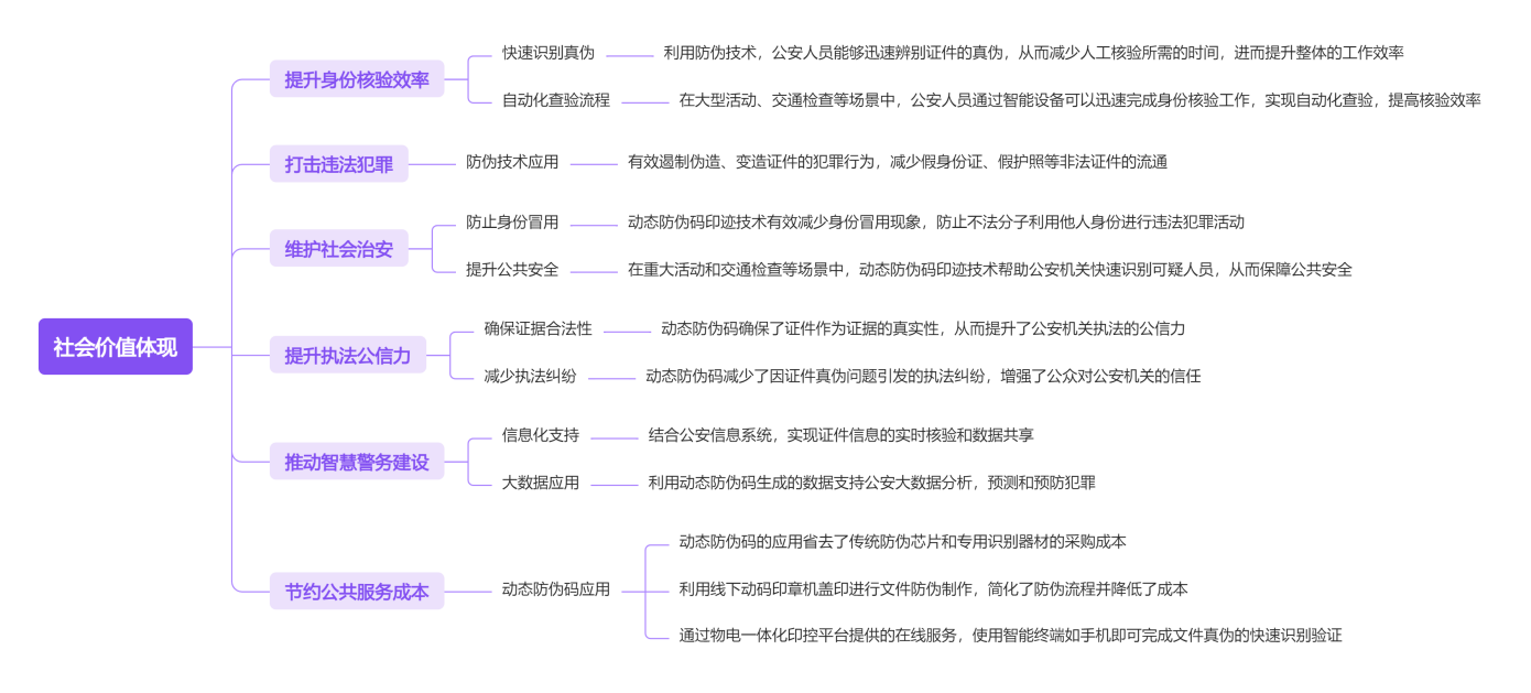 (2)动码印章项目通过其创新技术,如物联网、大数据和区块链,为社会活动监管和证件防伪提供了显著的社会价值。其应用主要体现在以下几个方面: