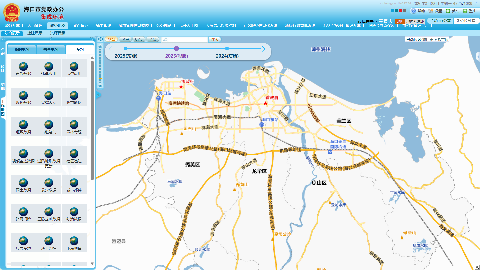 针对上述问题,我市立足基层治理实际,统筹规划、分步实施搭建城建基础数据共享平台,整合规划、民政、城管、国土等多部门多源空间数据,建成地理空间、人口等基础数据库,涵盖80余类城市治理相关专题数据。平台坚持技术优化与机制完善同步发力,推动数据全域汇聚共享与深度应用,力求打造贴合海口实际、可复制可推广的城市治理数字化样本。