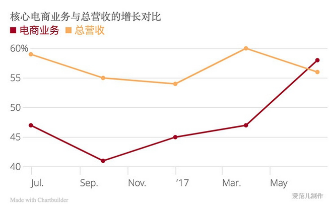 而作为阿里最主要的收入来源,核心电商业务更是展现了惊人的变现能力,为阿里赚到了 430.27 亿元人民币(63.47 亿美元),同比增长高达 58%,是近一年来首次突破 50%,甚至超过了总营收增幅。