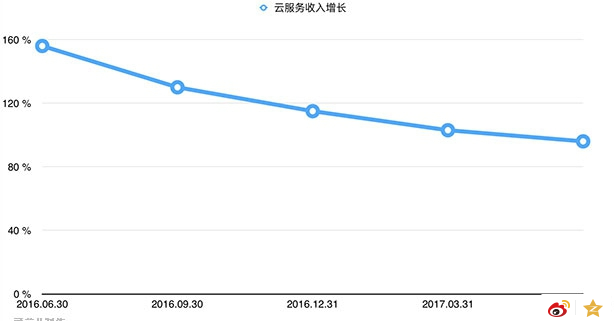 云服务是阿里近年来重点布局的领域,这一季度的表现仍然可圈可点:付费用户数首次超过 100 万,收入 24.31 亿人民币,但却仅实现了 96% 的增长,增幅为数个季度以来的新低。