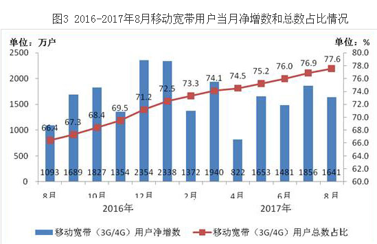 当月户均移动互联网接入流量超1800M。8月当月户均移动互联网接入流量达到1835M,比去年同期增长129.8%。1-8月移动互联网累计流量达130亿G,同比增长143.5%。其中,通过手机上网的流量达到123亿G,同比增长156.8%,占移动互联网总流量的94.1%。固定互联网使用量保持稳步快速增长,1-8月固定互联网宽带接入流量达1167亿G。