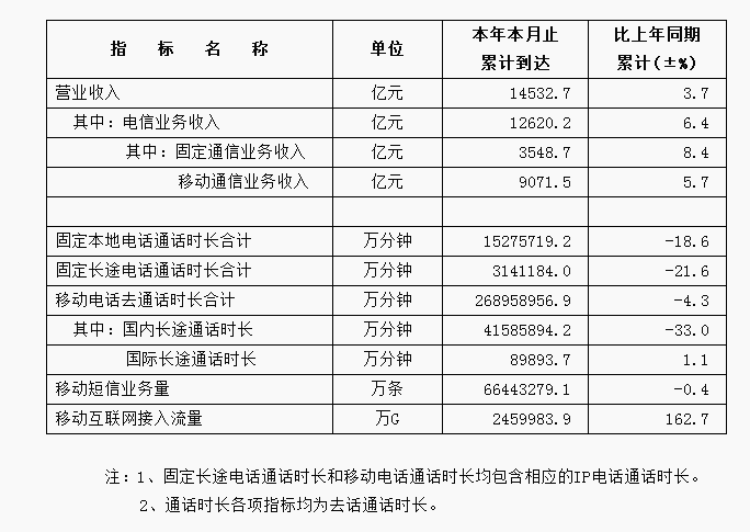 2017年通信业主要指标完成情况(一)