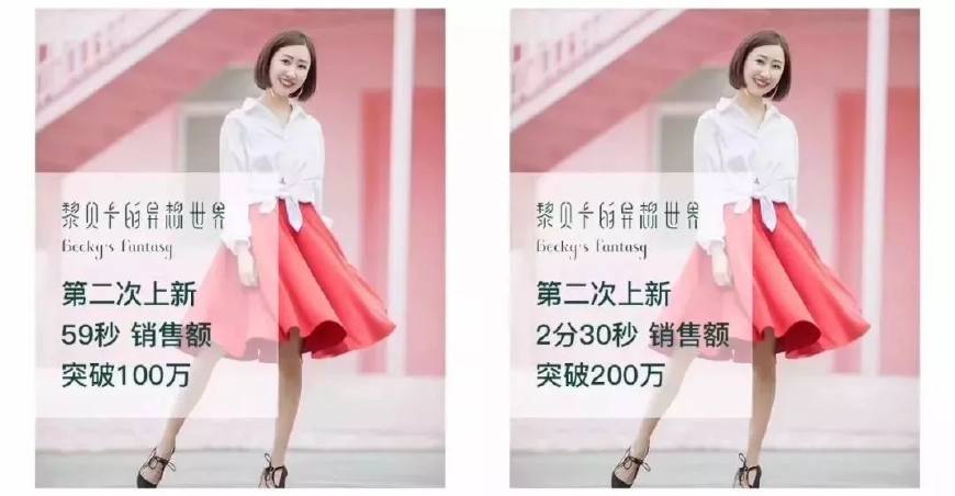 小程序电商的蛋糕,也吸引了“买买买教主”黎贝卡。在12月19日晚推出的同名品牌中,黎贝卡选择了在小程序「黎贝卡Official」上开卖。当晚,同名品牌的9个单品两分钟内卖出了1000件;7分钟,交易额突破100万。1月16日,黎贝卡同名品牌第二次上新,59秒销售额超100万。