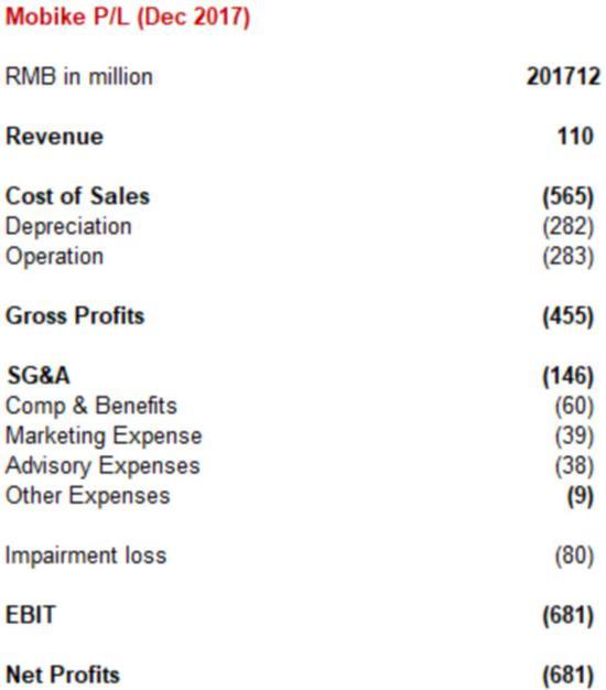 摩拜每月营运支出4亿人民币,去年12月单月营收为1.1亿元人民币