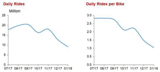 摩拜内部财务报表显示其日订单和每车日订单均持续下滑
