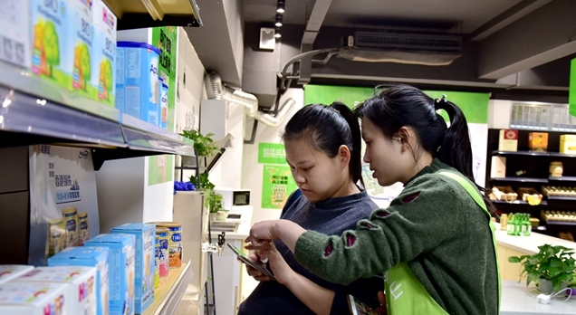 销售的核心在于产品品质,对于电商而言更是如此。在孵化园的一、二楼,不时有市民进去挑选货物。其中一楼的农特产品上行运营中心和体验中心及二楼的威海馆,囊括了云阳优质特色土特产品和威海的海产品,市民可以在线上下单,线下取货,实现双线驱动。而天生云阳品牌馆则是为区域公共品牌“天生云阳”打造的展示馆,市民通过对馆内产品的二维码进行扫描,即可了解其生产产地、品质真伪等信息,品牌馆为电商产品品质作出了承诺,更有利于产品销售。