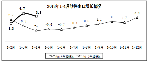 出口保持增长。1-4月,软件业实现出口165亿美元,同比增长3.8%,增速同比提高4.8个百分点。其中,外包服务出口增长4.4%;嵌入式系统软件出口增长2.8%。