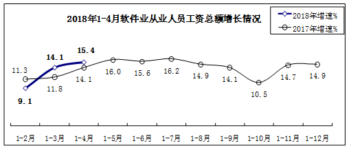 从业人数稳步增加,工资水平较快增长。1-4月,我国软件和信息技术服务业从业平均人数增长5.6%,增速同比提高1.8个百分点;从业人员工资总额增长15.4%,增速同比提高1.3个百分点;人均工资增长9.3%。