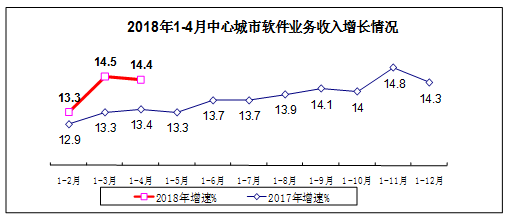 2018年1-4月,我国软件和信息技术服务业继续稳中有升,收入增速提高,利润和出口增速保持增长,从业人数和工资总额稳步增加。中部地区软件业增势突出,中心城市软件业保持领先。