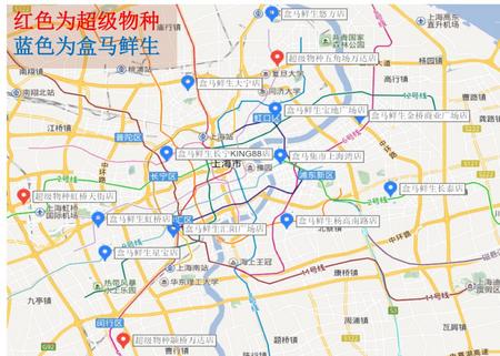 (盒马鲜生和超级物种在上海的门店分布图)